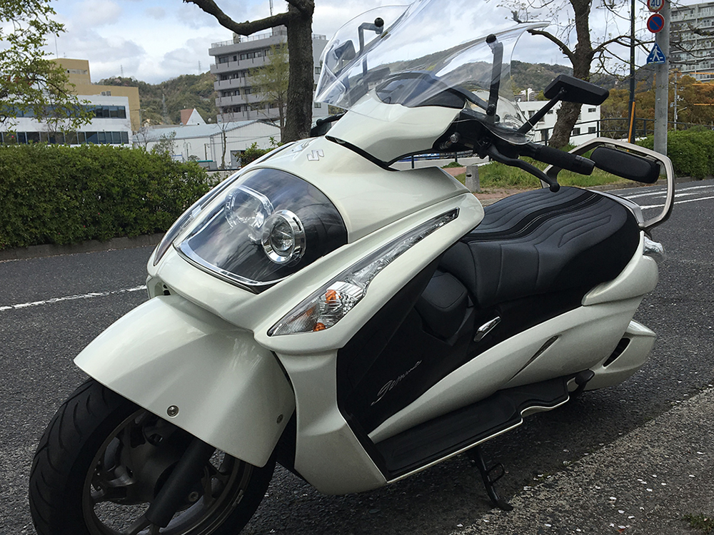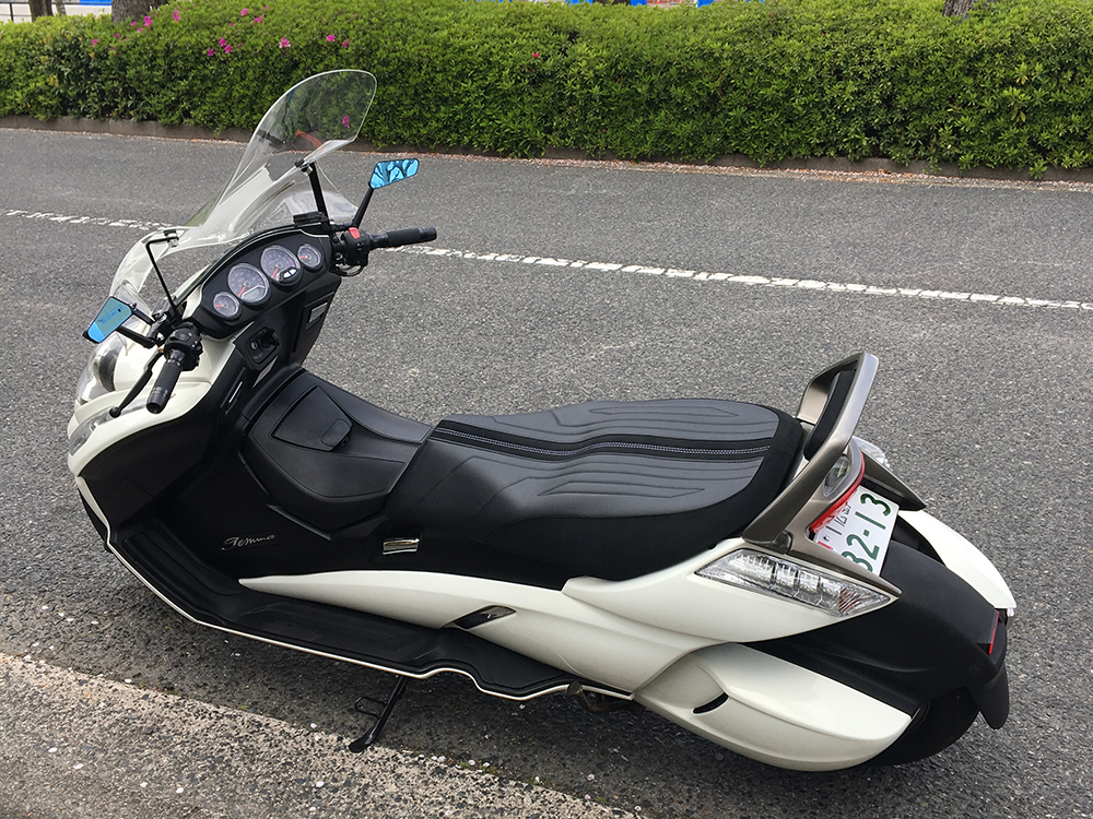 ハンドル回りはイタリアのRIZOMAを加工して取り付け、シートはスエードをチョイスしデザイン、最後はナンバープレートの移設と、ぱっと見カスタムしてある感じは見えないですが、そこが狙いでもありました。